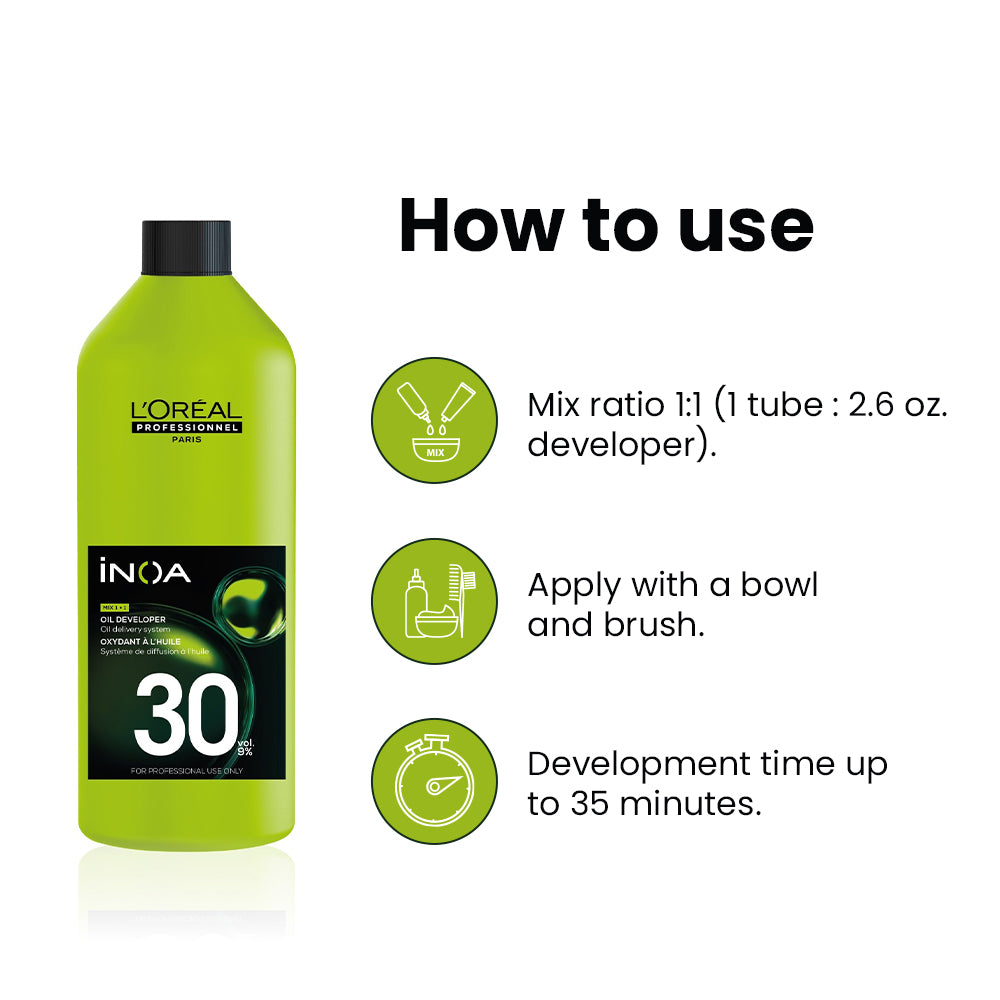 Experience vibrant, long-lasting color with L'Oreal Professionnel Inoa Rich Oxydant Creme Developer. This 30 Vol. 9% formulation is designed to provide maximum coverage and depth while protecting the hair's natural moisture. Achieve professional results every time with this trusted developer.